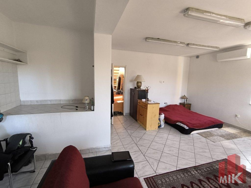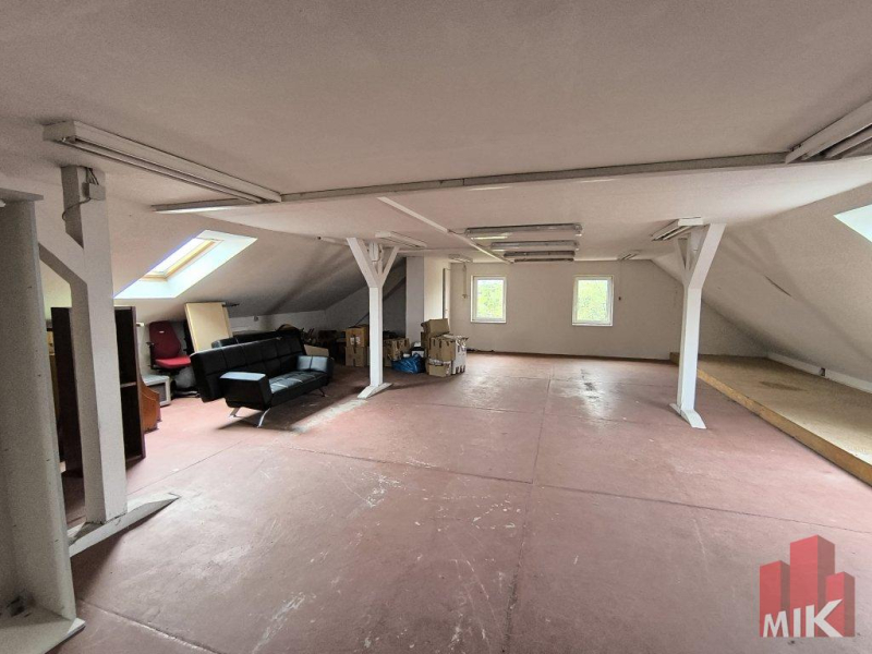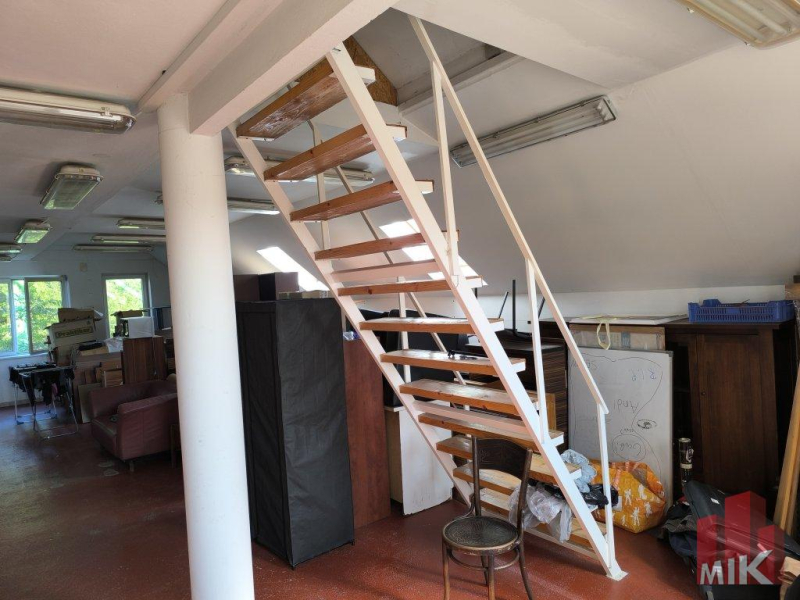 Nagy, 13x5 méteres műhely 2,75 m-es belmagassággal a földszinten, ugyanekkora nagy tér az emeleten irodának, raktárnak, bárminek.