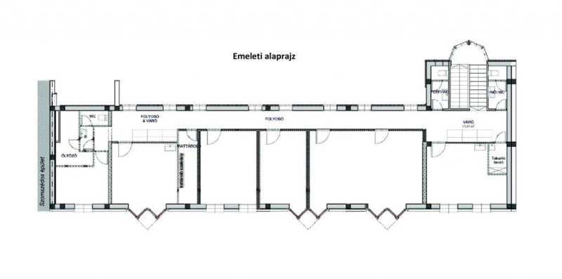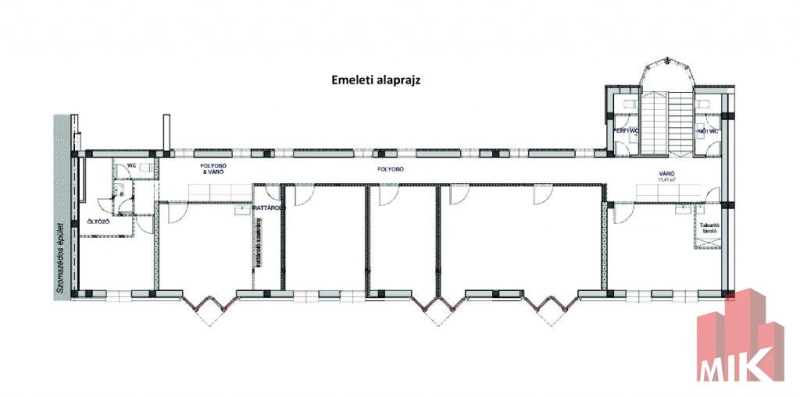 Jelenlegi beosztás alapján 6+6 teljes szoba/iroda, plusz 2 alkóv (ablak nélküli tároló), nagy recepció, folyosók, mosdók, öltözők, zuhanyzók várják bérlőiket. Profilváltás esetén a 12 szobában/irodában összesen akár 24+15 munkaállomás is telepíthető, így a kétszintes ingatlan irodaházként közepes méretű vállalkozás központjává is válhat.