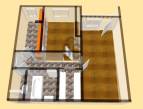 A szobákban fa parketta található, a többi helyiségben PVC burkolat.