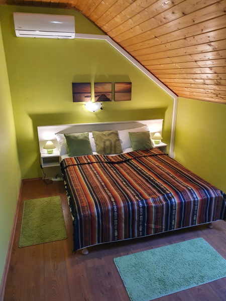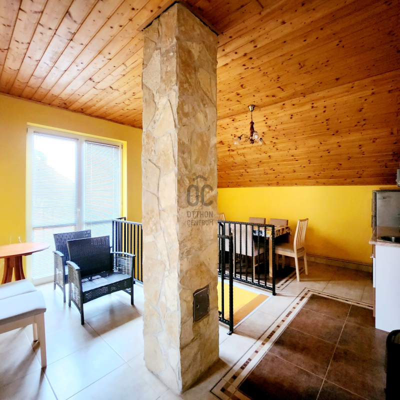 Az ingatlan öt szobával és két fürdőszobával rendelkezik. A földszinten tágas konyha, 1 hálószoba és fürdőszoba WC-vel található, míg az emeleten további 3 hálószoba, konyha és egy további fürdőszoba WC-vel található. A ház kiváló állapotban van. Fűtési rendeszere modern gáz (cirko) fűtés. Minden helyisèg hűtő -fűtő klímával felszerelt, ezen kívül kandalló is rendelkezésre áll.