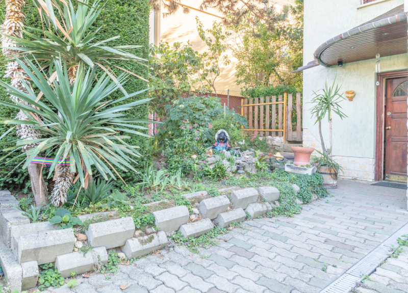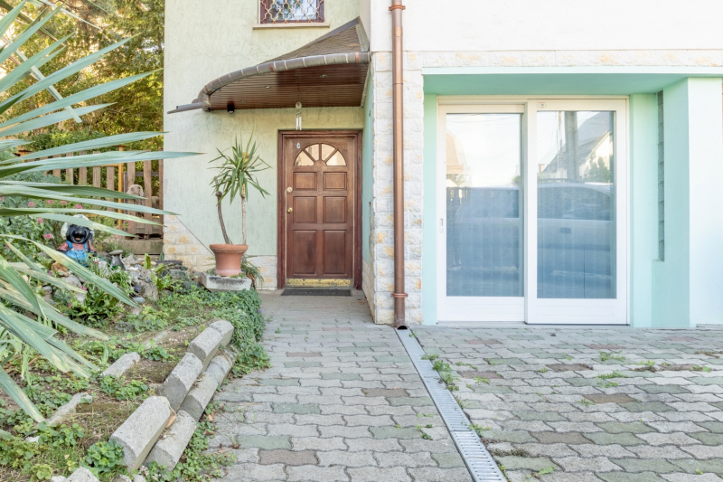 - Terasza és kertje a nappalihoz kapcsolódik, amely a domborzati viszonyok miatt egy szinttel feljebb van, mint az utcafront felőli bejárat.
