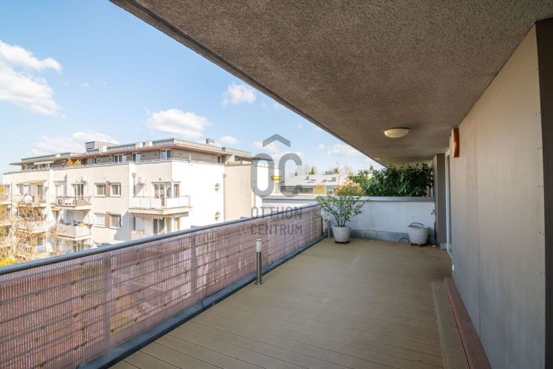 Eladó Zugló, Alsórákos zöldövezeti részén, a Paskál Lakóparkban lévő, bekerített kerttel rendelkező épületében elhelyezkedő 77 m2 alapterületű, 2 hatalmas teraszos, (+45 m2) lakása, teremgarázs beállóval.