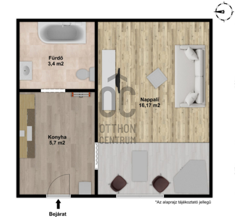 - Nappali, konyha, rakodó-galéria, fürdőszoba