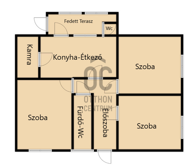 - Tágas konyha, kamra...ebből nyíló fedett terasz