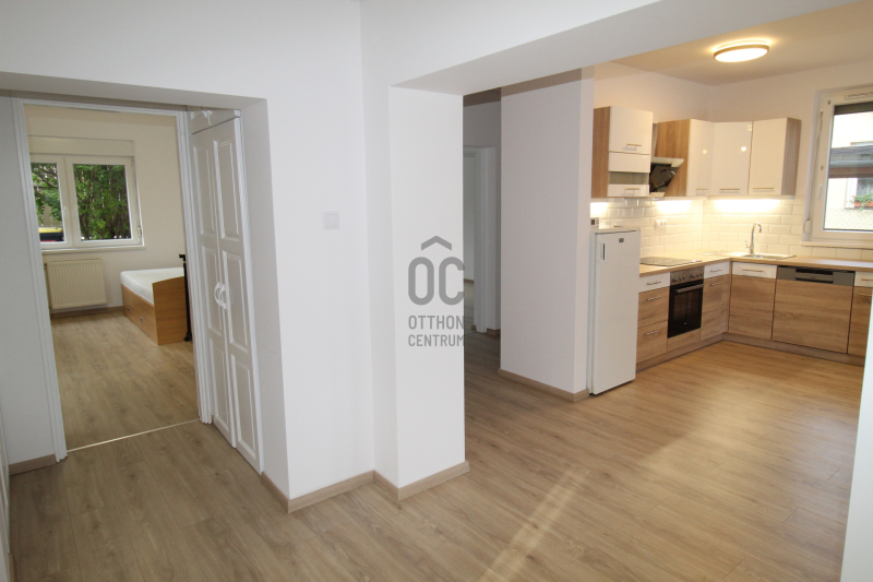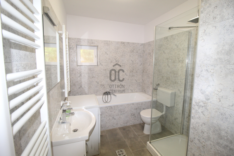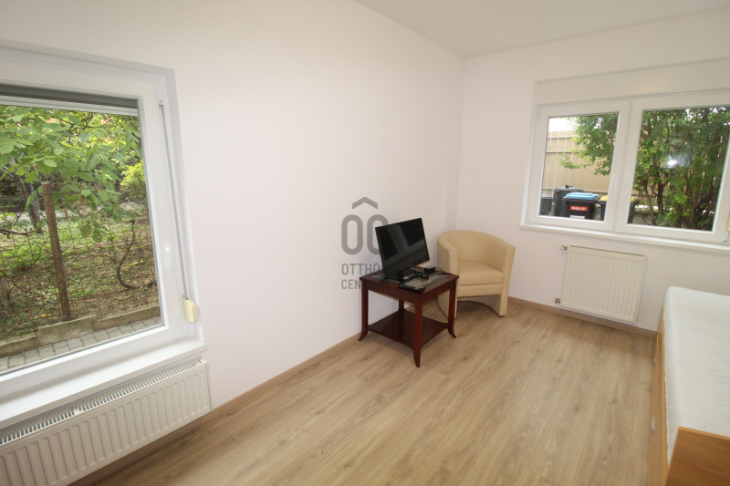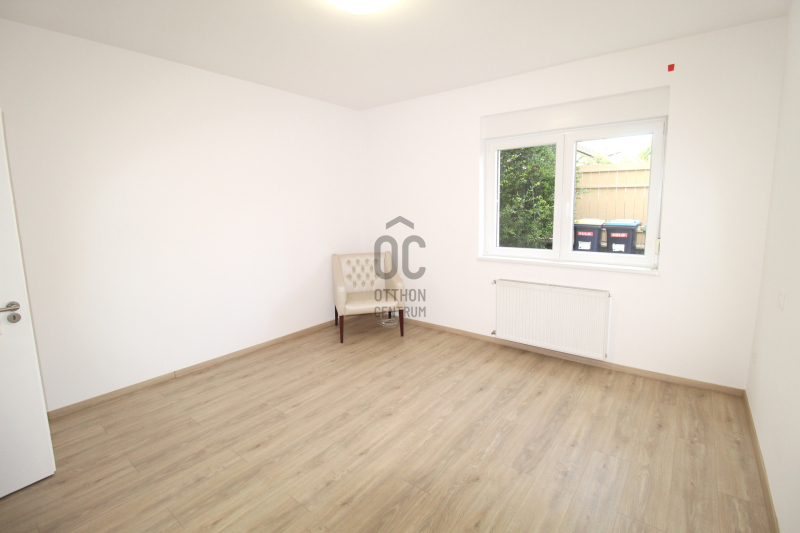 (Ugyanitt a külön bejáratú emeleti lakás is kiadó: 92 nm, nappali-étkező, 11 nm-es terasz, szeparált konyha, 2 db hálószoba, gardróbszoba, kádas fürdő és kamra, bútorozott, gépesített, újszerű állapot.)