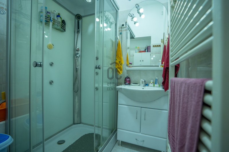 A fürdőszobában egy több oldalról vízsugárral masszírozó zuhanyzó szintén a felújítás részeként lett beüzemelve.