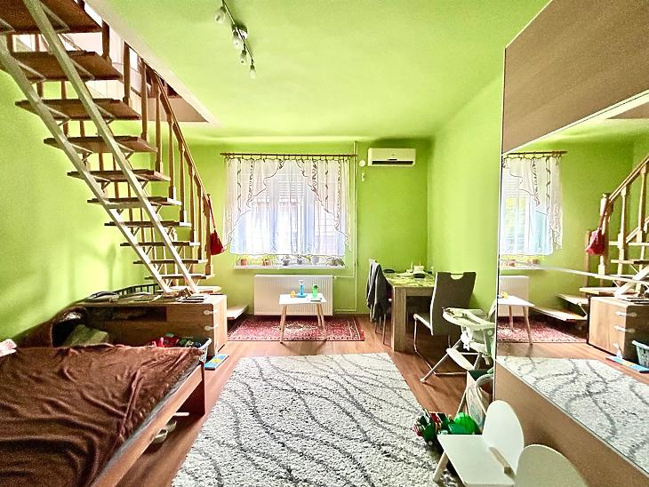 Rendezett, 7 lakásos társasház udvarában kínálunk megvételre egy 2+1 FÉLSZOBÁS, BELSŐ KÉTSZINTES LAKÁST csendes mellékutcában.