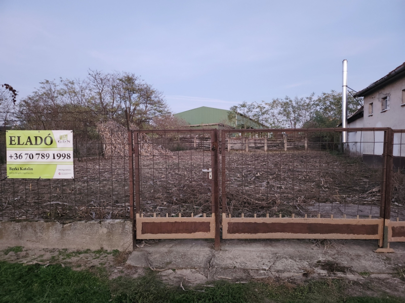 A telek teljesen körbe van kerítve, az utca felől kis ajtó és nagykapu is található. A telek gondozott, építkezésre kiválóan alkalmas, eddig növénytermesztés folyt a telken.