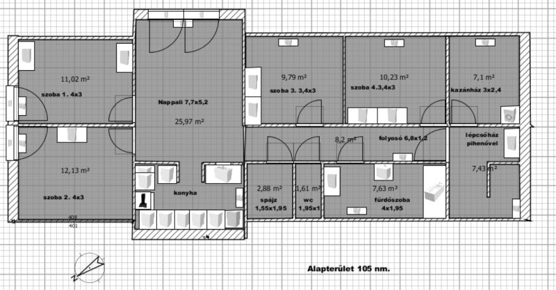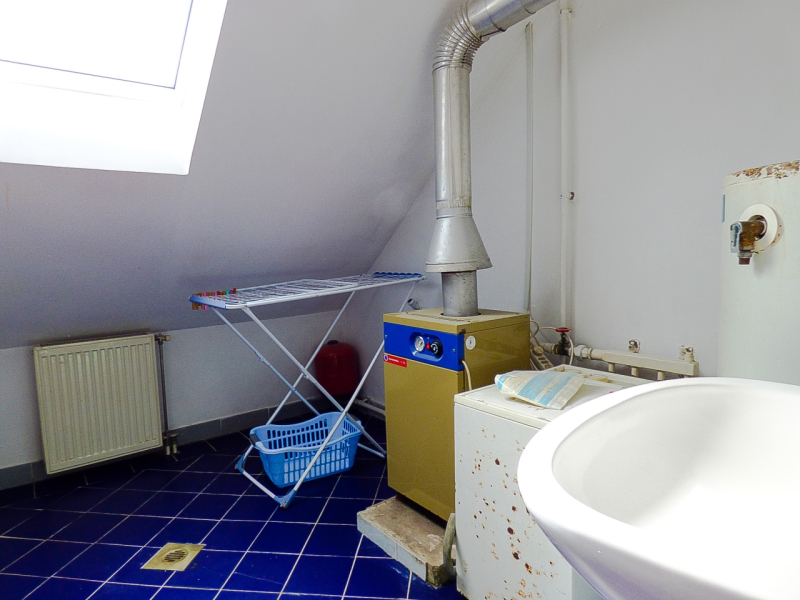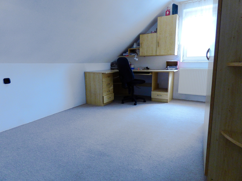 Az emeletre egy elkülönülő belső lépcsőházból juthatunk fel, amely amerikai konyhás nappali + 4 hálószobából, fürdőszobából, külön wc-ből, közlekedőből, spejzból és kazánházból áll.