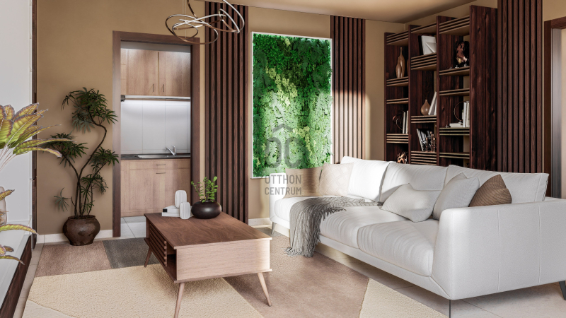 A laká eredetileg 51m²-es lakótérrel és egy 17 m²-es iroda besorolású térrel lett összenyitva, így ideális választás lehet olyan vásárlóknak, akik egy gyerekkel költöznének vagy háziállat miatt fontos a kertkapcsolat. Fontos megemlíteni, hogy az ingatlan az Otthon Start program keretében is megvásárolható, mivel a lakás részére az már ingatlanként elérhető, így kedvező finanszírozási lehetőségeket nyithat meg a vásárlók számára.