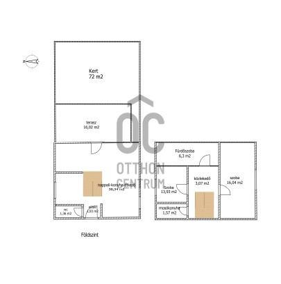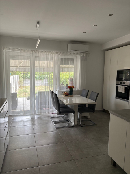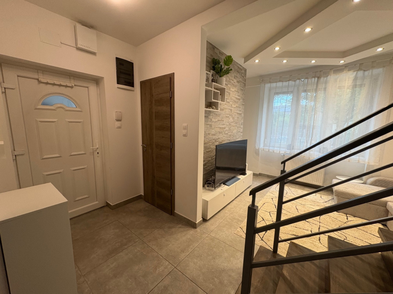 A földszinten világos nappali–konyha–étkező, vendég-WC és közvetlen kijárat a 72 m² saját kertbe – ideális játszótérnek, grillezéshez vagy közös családi estékhez.