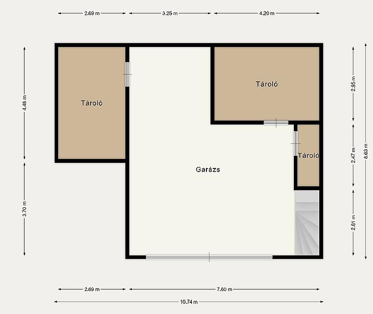 Az alagsort a házon belül lépcsőn, illetve az utcafront felől a garázskapun keresztül is megközelíthetjük. Itt 1 autóbeállót és további kettő helyiséget találunk, egy mosókonyhát, illetve egy tárolót, ahol a lakás gépészete kapott helyet. A lakás melegéről cirkó gondoskodik.