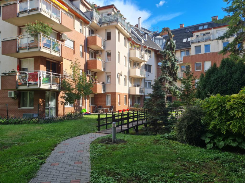 Rómaifürdőn, a népszerű és gyönyörű PLATÁNLIGET LAKÓPARKBAN eladó egy 82 m2-es 3 szobás teraszos, kertkapcsolatos szép lakás.