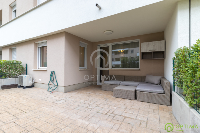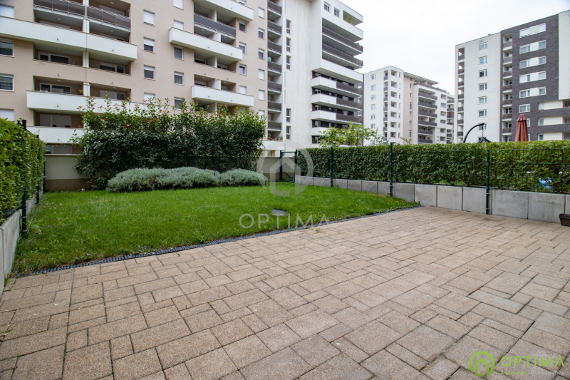 A 45 m²-es lakás az I. emeleten helyezkedik el, saját 24 m²-es TERASSZAL és 40 m²-es PRIVÁT KERTTEL, így közvetlen kültéri élettérrel rendelkezik.