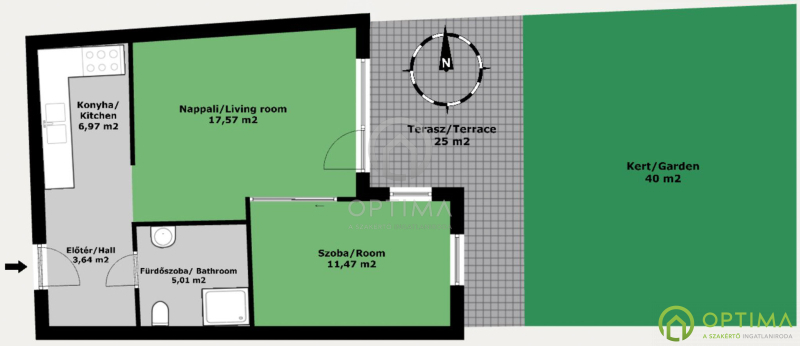 A KÖZÖS KÖLTSÉG 25.000 FT, amely magában foglalja a portaszolgálatot és a kert fenntartását.