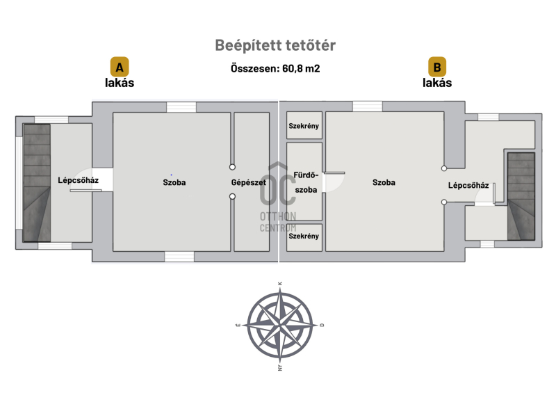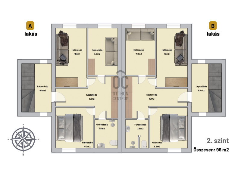 - Mindkét lakáshoz tartozik egy autóbeálló hely, igény esetén garázs kialakítható az alsó szinten.