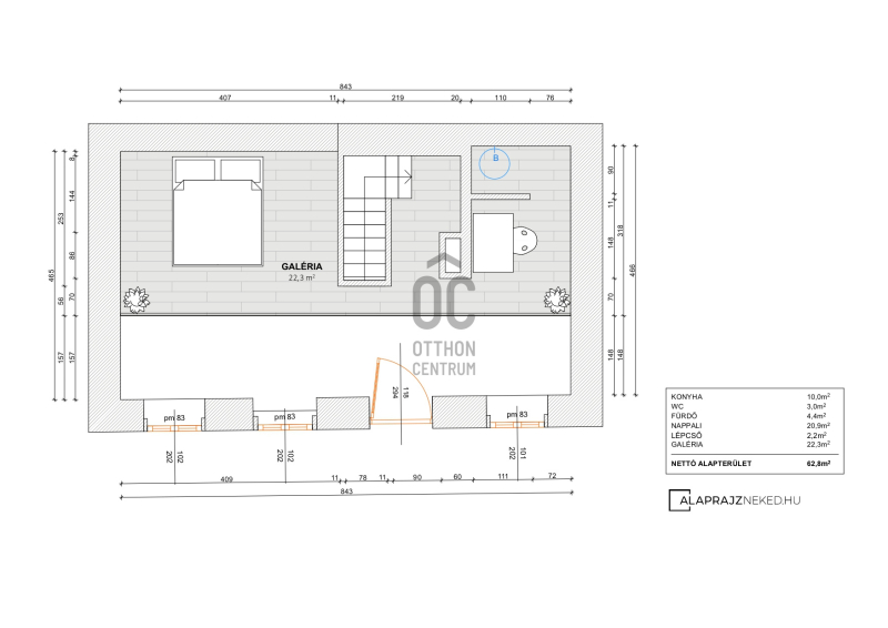 A galériaszint acélszerkezetű, stabil, 220 cm belmagasságú.