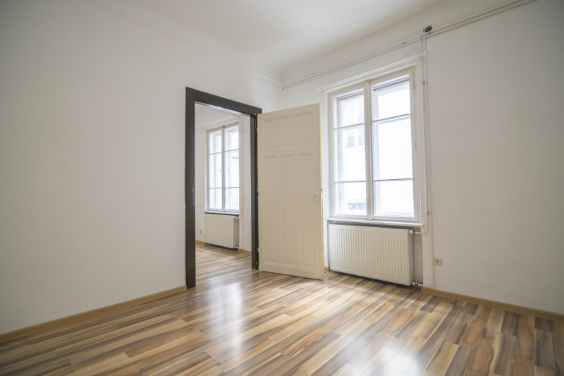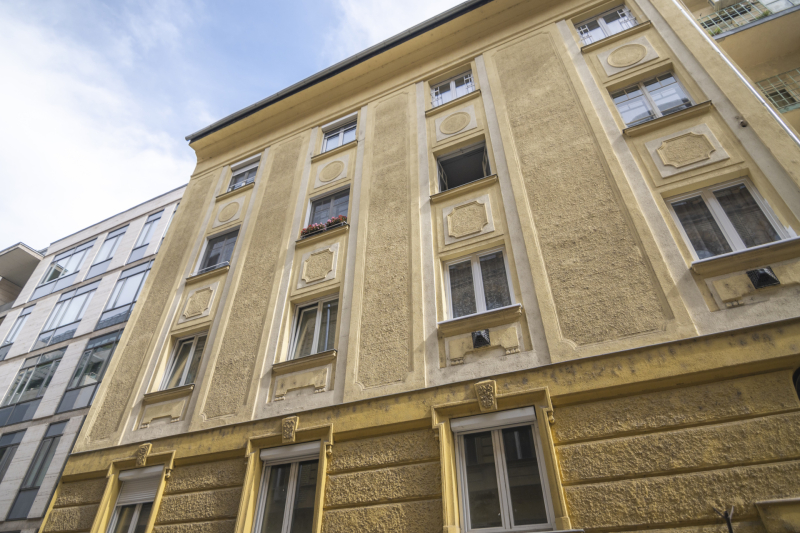 ablakok előtt nincs körfolyosó, csendes belső udvarra néznek