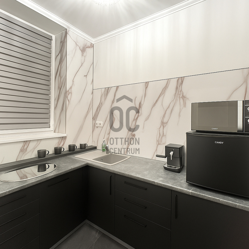 - Prémium minőségű, gépesített konyha (mikró, hűtő, kávégép stb.)