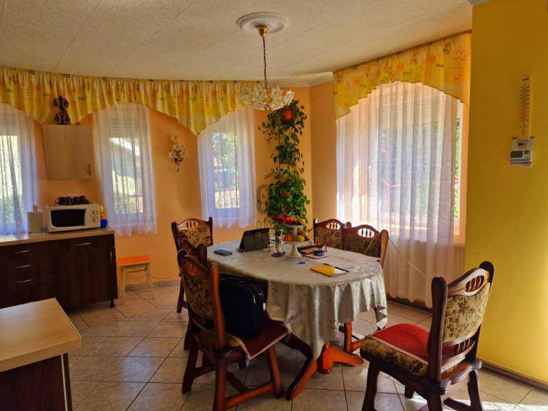 A 142 m²-es, szintes elrendezésű ház folyamatosan karbantartott, így új lakói azonnal birtokba vehetik. Kialakítása kifejezetten a család kényelmét szolgálja: a 4 külön nyíló szoba lehetőséget ad arra, hogy minden gyermeknek vagy családtagnak saját birodalma legyen, míg a tágas nappali a közös együttlétek színtere. A külön étkező és teljesen felszerelt konyha garantálja, hogy a közös étkezések igazi családi élményt jelentsenek.