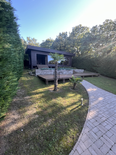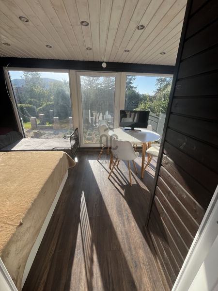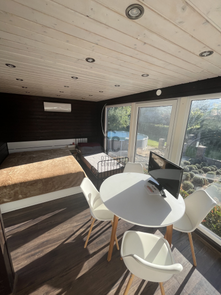 A telek részén, egy modern, 30 négyzetméteres hűthető-fűthető mobilház található rajta, amely kis nyaralónak is tökéletes választás, emellett pedig helyet kapott még egy 6 személyes lakókocsi és egy régebbi, tárolóként funkcionáló, tégla épület is a telken belül, valamint egy fedett kiülő/ terasz.