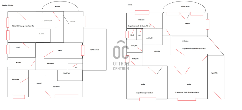 - a földszinten található továbbá egy közös használatú konyha, étkező, vendég WC ( 42,09nm) és egy fedett terasz