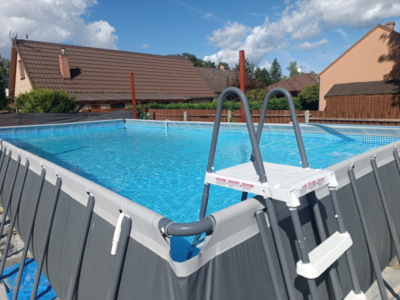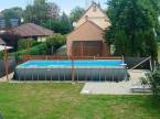 - teljesen körbe kerített, új kerítés árnyékolóval