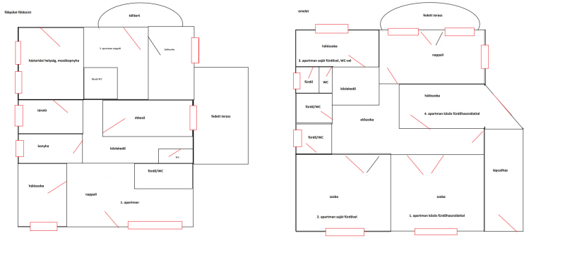 - a földszinten kettő, az emeleti részén négy apartman lett kialakítva