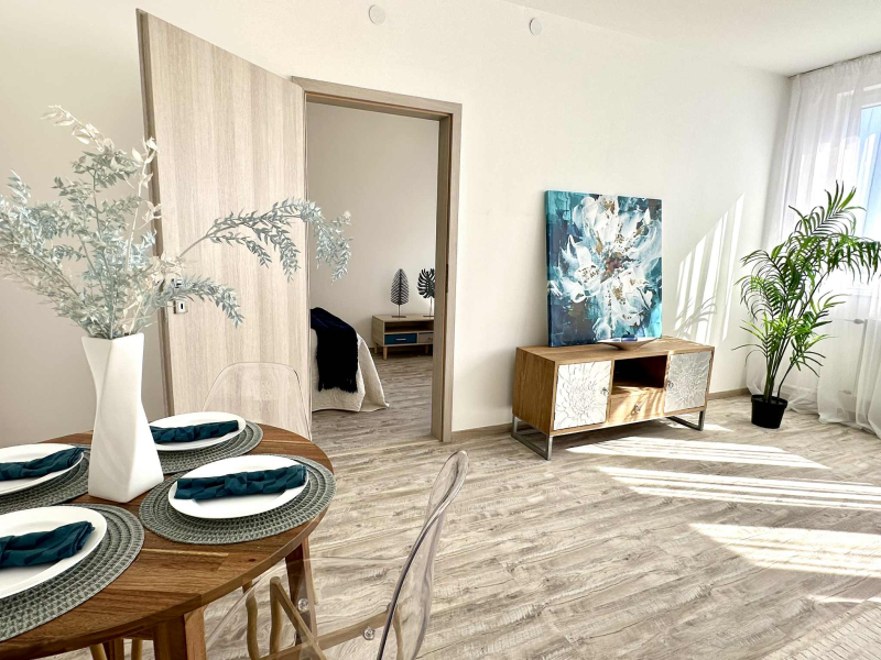 Az 67 nm nagyságú teljesen felújitott 2.5 szobás erkélyes lakás, tágas terei révén minden korosztály számára ideális lehetőséget kínál. A lakásba lépve az előszobából érhetjük el a helyiségeket. A lakásban a szobák külön is és egybe is nyílnak.