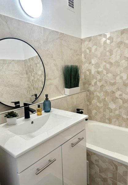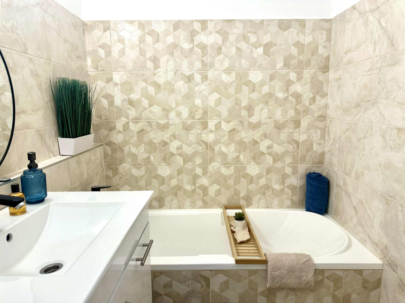 A lakásban a fürdőszoba és wc felújítása során teljesen új vízcsövek , új mosdószekrény, kád, csaptelepek, új wc és tartály lettek beépítve.
