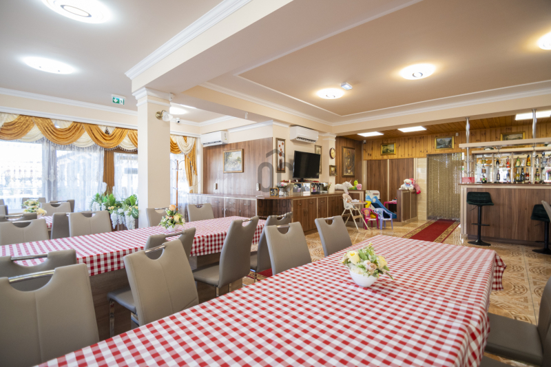 amelyhez konyha, tálaló, hűtőkamra, iroda és gyereksarok is tartozik.
