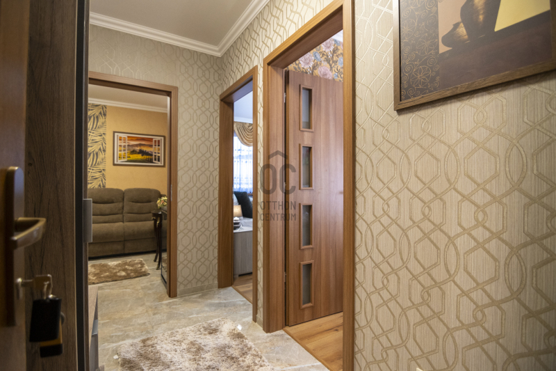 A belső terek modern, időtálló anyagokkal, elegáns burkolatokkal és harmonikus színvilággal készültek.