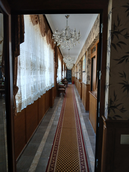 Emellett helyet kapott itt a recepció, személyzeti öltöző, külön vendégmosdó, valamint a panzió szíve: az étkező és lobbybár,