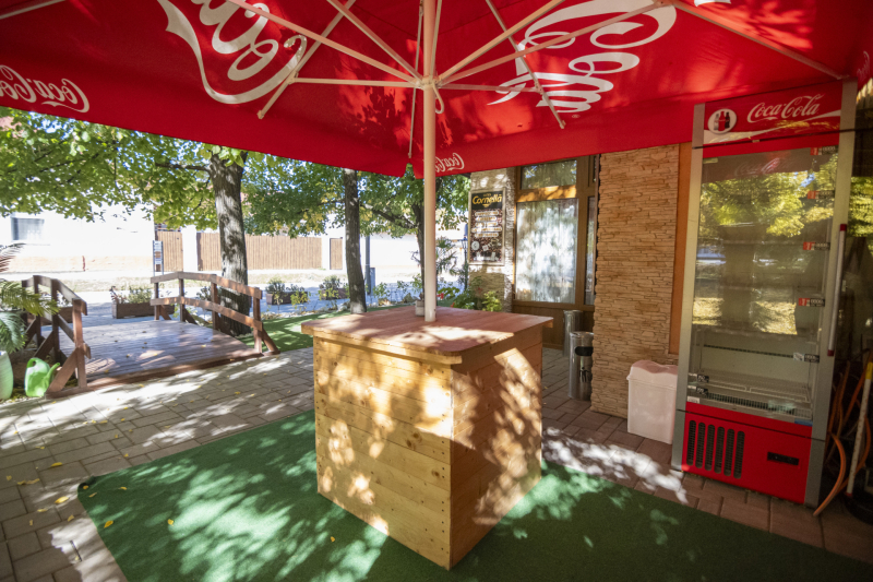 Az udvaron fagyizó és hangulatos, virágos kerthelyiség várja a vendégeket, amely ideális nyári pihenésre, kávézásra vagy esti borozásra.