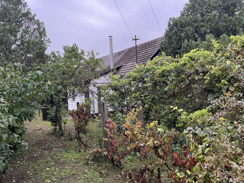Kertben gyümölcsfa, szőlő, öntözéshez fúrott kút használható.