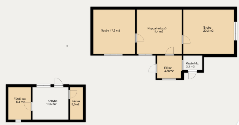 A konyha és a fürdőszoba külön épületben került kialakításra.