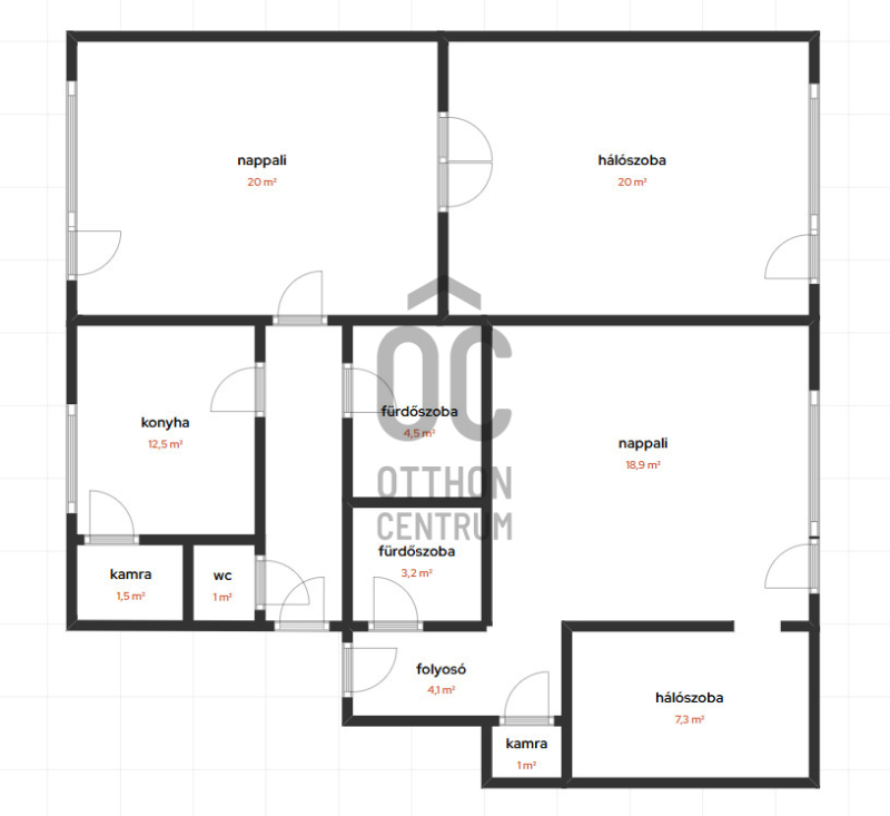 A hálószoba és a nappali megkímélt eredeti fa parkettával burkolt a többi helység hideg burkolattal van ellátva.