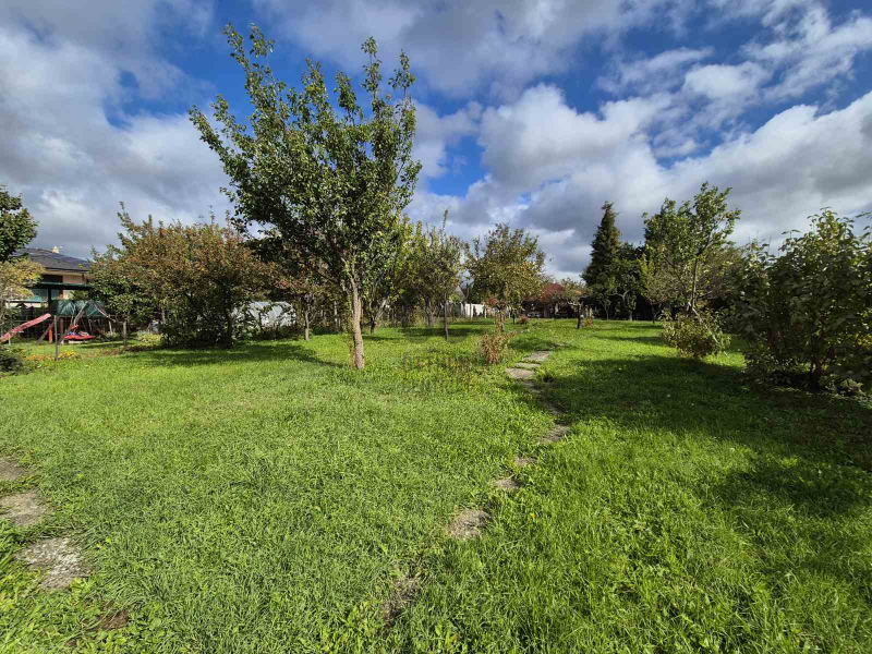 A telek 1197 nm, minimálisan lejtős, gondozott, gyümölcsfákkal telepített.