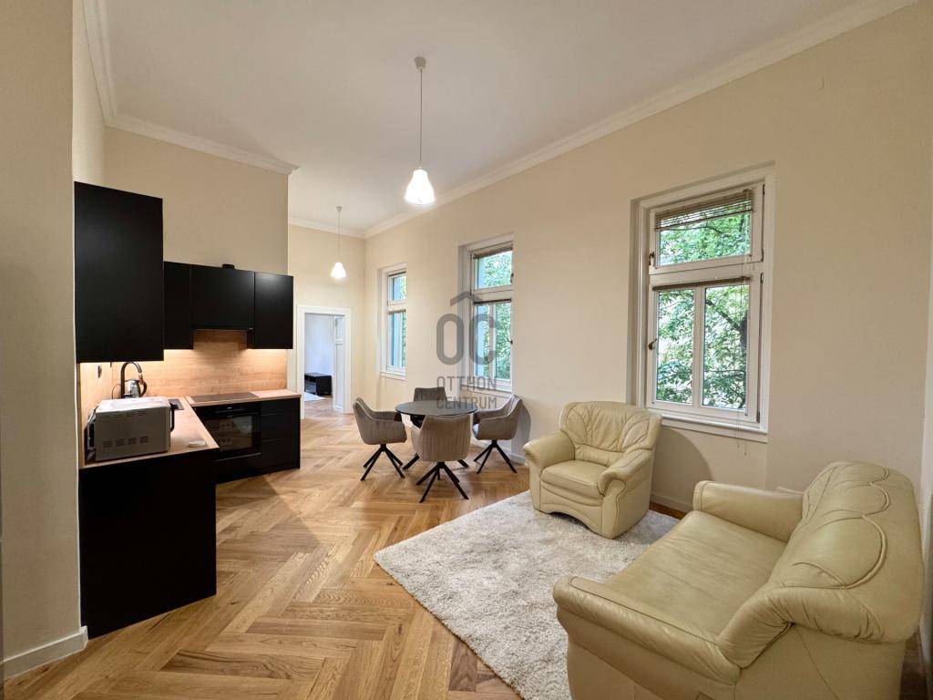 Kiadásra kínálunk egy minőségi anyagokkal teljeskörűen felújított, kiváló állapotú, bútorozott, két és félszobás lakást a Stefánián.
