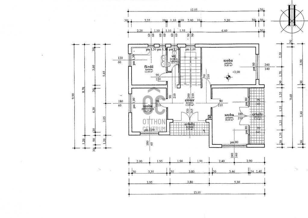 Az emeleten 3 hálószoba, 2 fürdő+wc és egy vendég wc, valamint 2 gardróbszoba is található.