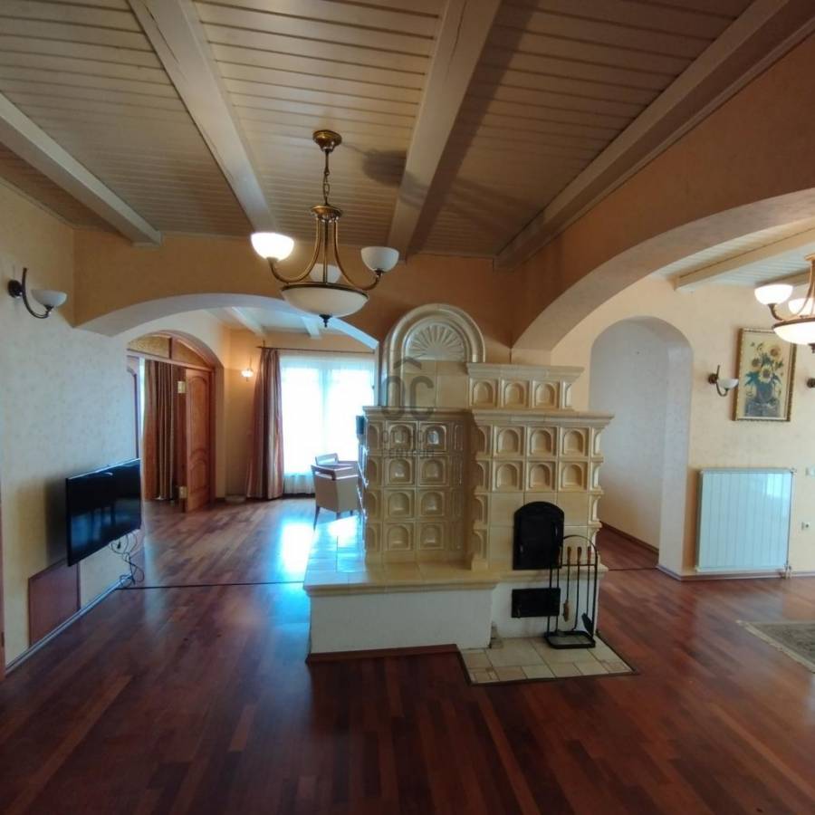 A földszinten található egy hatalmas egylégterű konyha-étkező-nappali, amelynek középpontjában egy cserépkályha található, valamint egy több funkciós helyiség is helyet kapott mint dolgozószoba, amely egy harmonikaajtóval egybenyitható a nappalival. Továbbá fürdő, wc, gardrób, kamra és egy tágas tároló helyiség is található a földszinten és egy két beállásos garázs, melynek térkövezett bejárója fűtött.