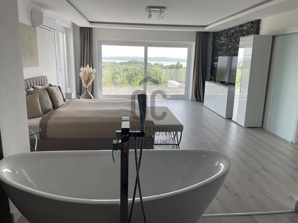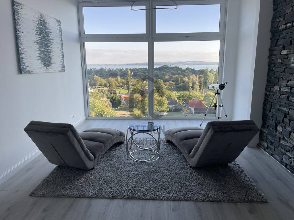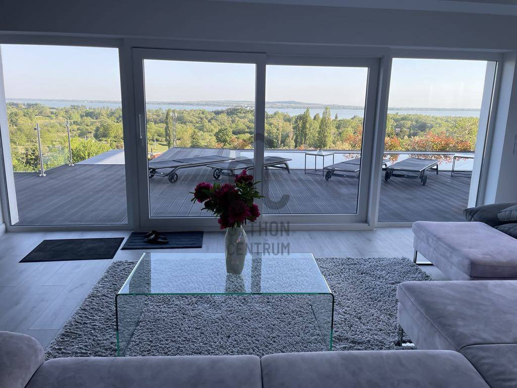 Lélegzetelállító panoráma, tágas terek és modern elegancia – ezek a jellemzők határozzák meg ezt a kivételes, újszerű, örök balatoni panorámás villát.