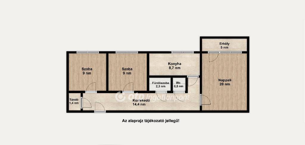 Az ingatlanba belépve valamennyi különnyíló helyiség könnyen megközelíthető a nagyméretű beépített szekrényekkel ellátott folyosóról. A bejárati ajtóval szemben helyezkedik el a két kisebb méretű hálószoba, mellettük a folyosóról nyílik a fürdőszoba és a wc helyiség. Az ablakkal rendelkező konyha kialakításának köszönhetően megfelelően szellőztethető, ajtaja zárható. A klímával felszerelt tágas nappaliból érhető el a 5 négyzetméteres napsütötte erkély. Továbbá az ingatlanhoz tartozik egy földszinti, nagyjából 6 négyzetméteres tároló helyiség, melyben akár még mosókonyha is kiépíthető.
