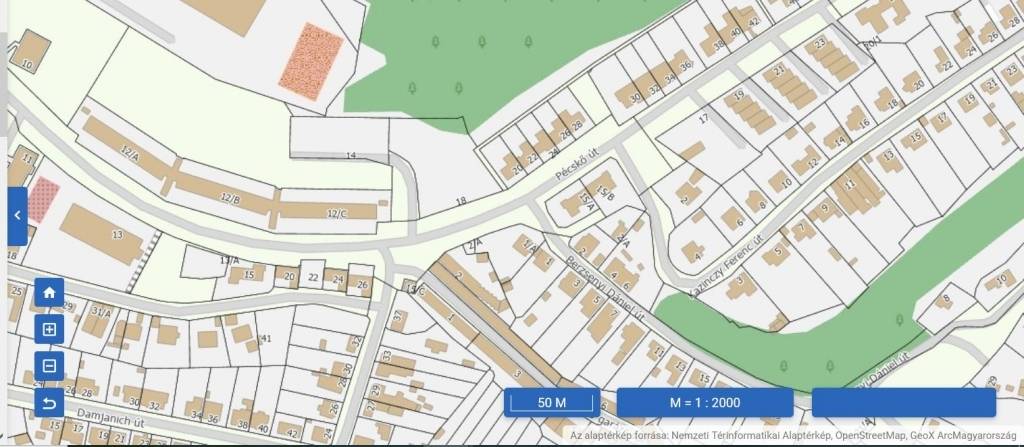 Mérete: 2563 nm, beépíthetőség mértéke: 80 %, engedélyezett max. építmény magasság 18.5 m.