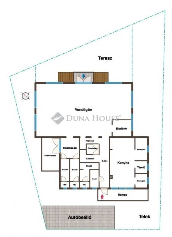 autóbeállóval, 35 nm-es pincével, fedett és nyitott terasszal, áruhordó rámpával ELADÓ!