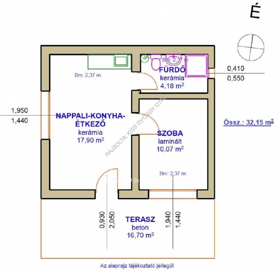 Helyiségek: szoba, nappali-konyha-étkező, fürdő (WC-vel egyben), terasz.