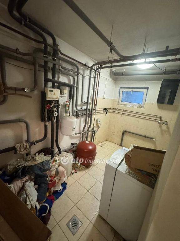 Fűtés: álló gázkazán (vegyes kazán helye is ki van építve), nappaliban kandalló (hiányos).