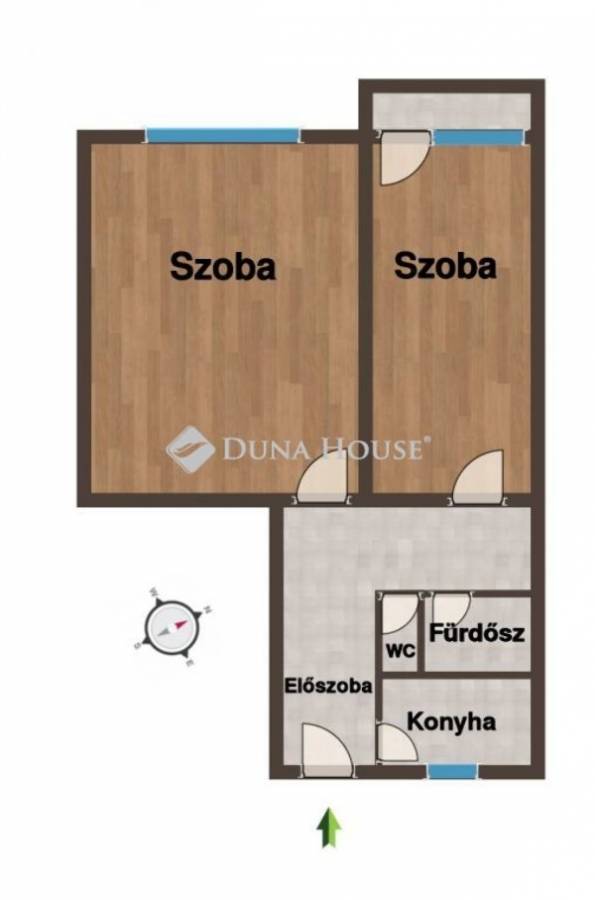 A lakás jól átgondolt elrendezésű: külön WC-vel rendelkezik, ami nagy előny a mindennapokban. A szobák kényelmes méretűek.