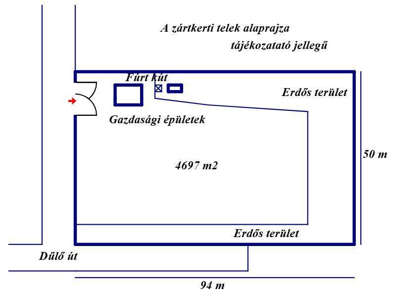 A telek idilli erdős terület mellett csendes, nyugodt környéken, aszfaltozott úttól kb. 1250 méterre helyezkedik el. Gépjárművek parkolása a telken belül lehetséges, a dűlő út felöl kapubejárón keresztül megoldott.
