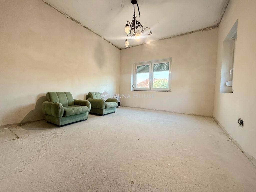 Eladó családi ház Sárosd központjához közel, felújítás alatt!Sárosdon, frekventált, központ közeli elhelyezkedéssel kínálunk megvételre egy felújítás alatt álló, 78 m²-es családi házat, 1438 m²-es telekkel. A közelben élelmiszerbolt, buszmegálló, óvoda, iskola és cukrászda található, Székesfehérvár 25 km, Dunaújváros 30 km, Budapest pedig 70 km távolságra érhető el.A ház főbb jellemzői,alapterület: netto: 78 m² ;falazat: vegyes (tégla + vályog), teljes szerkezeti felújításon átesett;új víz- és szennyvízvezeték, új betonréteg, padlófűtés kialakítva;új kondenzációs gázkazán;háromfázisú áram beveze,új nyílászárók beépítve, rajta rejtett redőnytokos redőnyökke,fürdőszoba kialakítása (kád, mosdó, WC, törölközőszárító kiállás)Helyiségek:2 szoba, amerikai konyhás nappali, fürdőszoba, külön WC, mosókonyha, spájz.Telek és mellék épületek;nyári konyha,műhely és tároló,virágosker,kb. 45 gyümölcsfa, eperpalánták, szeder- és bogyósbokrok,konyhakert, amely további gazdálkodásra is alkalmasFelújítás alatt befejezendő munkák:A házban az előtér részben már vakolt, kisebb befejező munkákat igényel, így az új tulajdonos a saját ízlése szerint alakíthatja ki. A belső terek friss vakolatot kaptak,+ padló új betonréteget kapott, a gépészet teljesen új.Bővítési lehetőség:Az ingatlan hátsó részén található fedett terület további lehetőségeket kínál. A padlófűtés kiállása már kialakításra került, így egyszerűen továbbvezethető. A terasz beépítésével akár plusz lakótér, dolgozószoba vagy különálló egység is kialakítható.Az ingatlan tehermentes, azonnal birtokba vehető, és ideális választás lehet azoknak, akik szeretnék saját igényeik szerint befejezni, illetve kihasználni a telekben és a házban rejlő bővítési lehetőségeket.